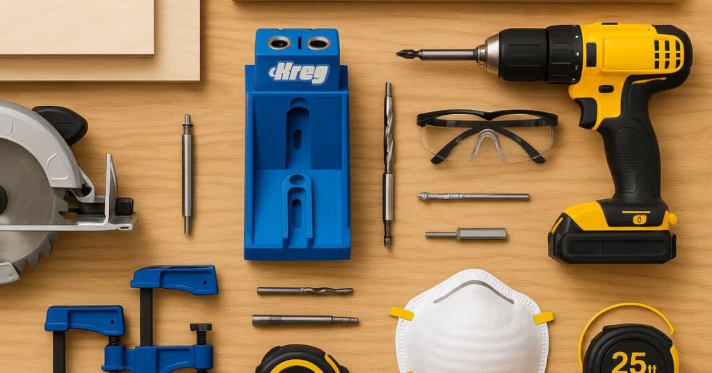 A Kreg pocket hole jig is invaluable for creating strong pocket hole joints. Don’t forget clamps, sandpaper, a putty knife, and a jig for intricate cuts. Having a nail gun is also helpful.